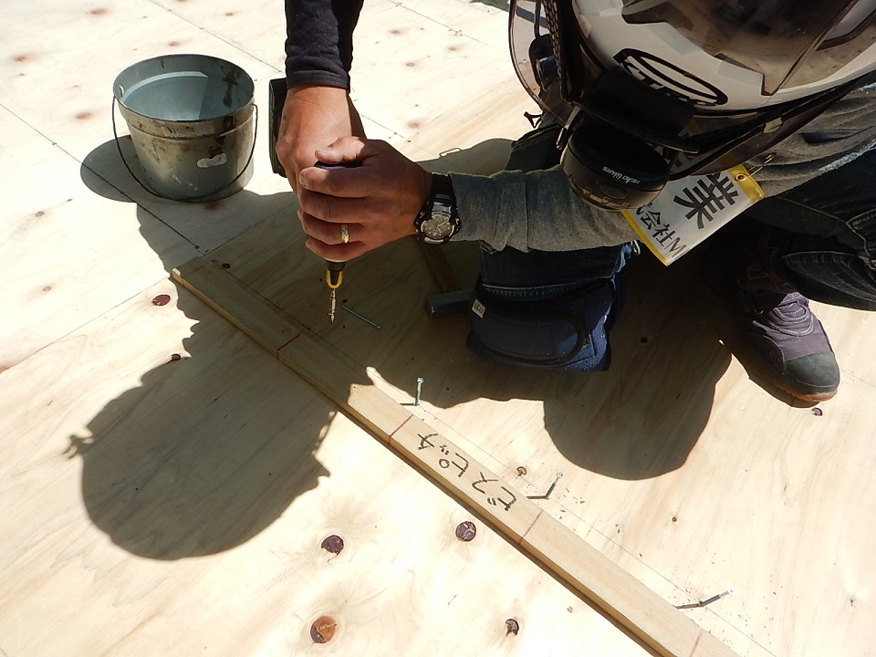 既設の防水材は撤去せずに、新たに構造用合板で下地を作成し