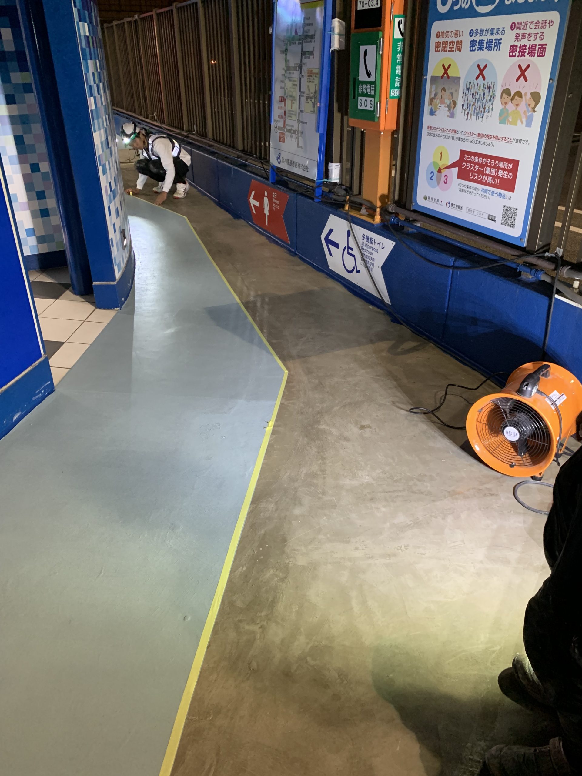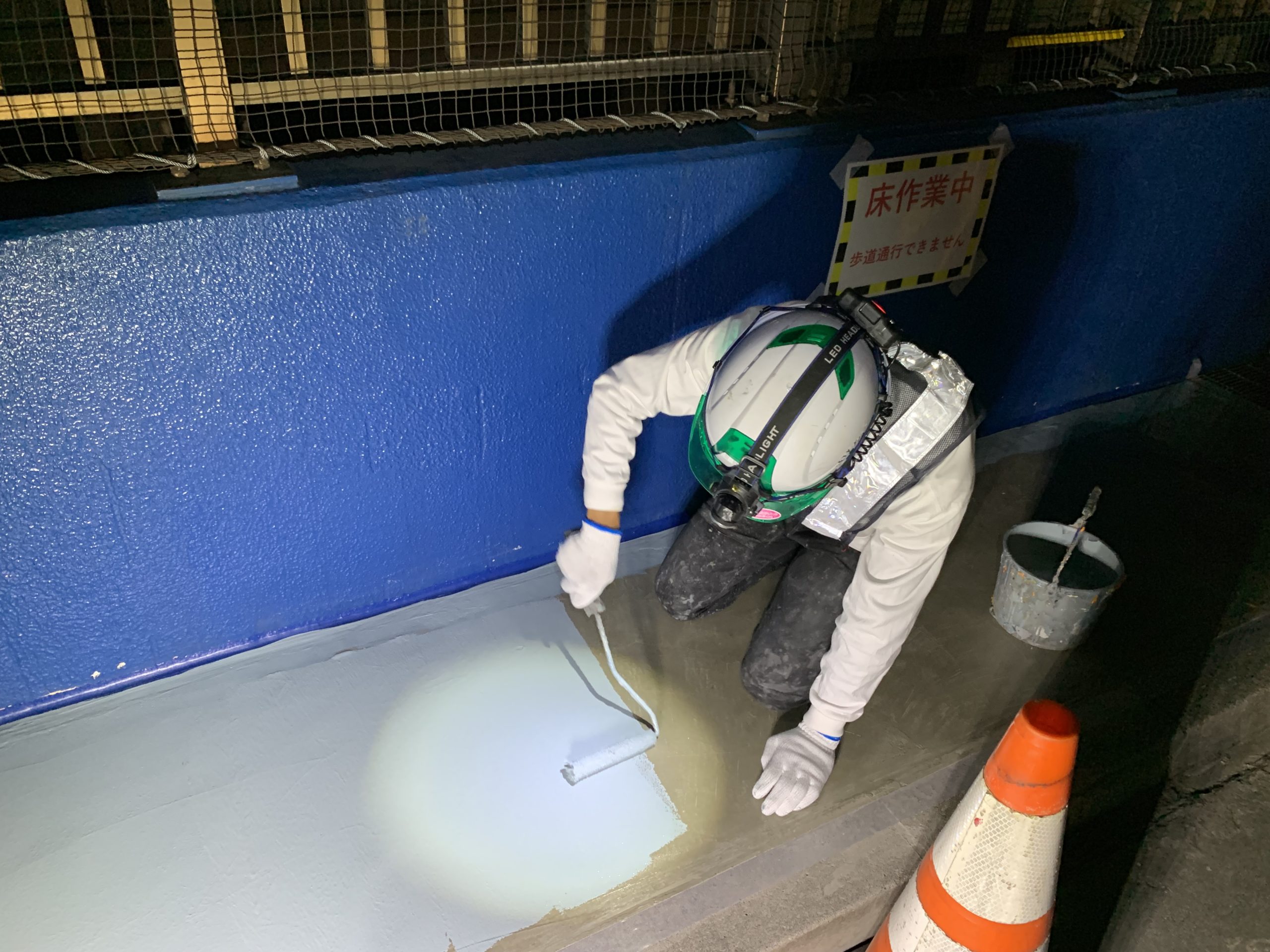 大阪市港区のパーキングエリアの塗床補修では、お客様が利用される中での工事のため