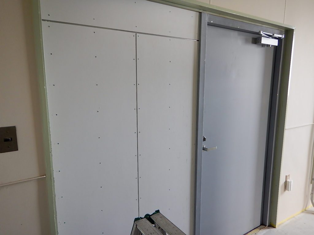今回の工事では、古くなった両開きの鉄扉を片開きにする工事になります